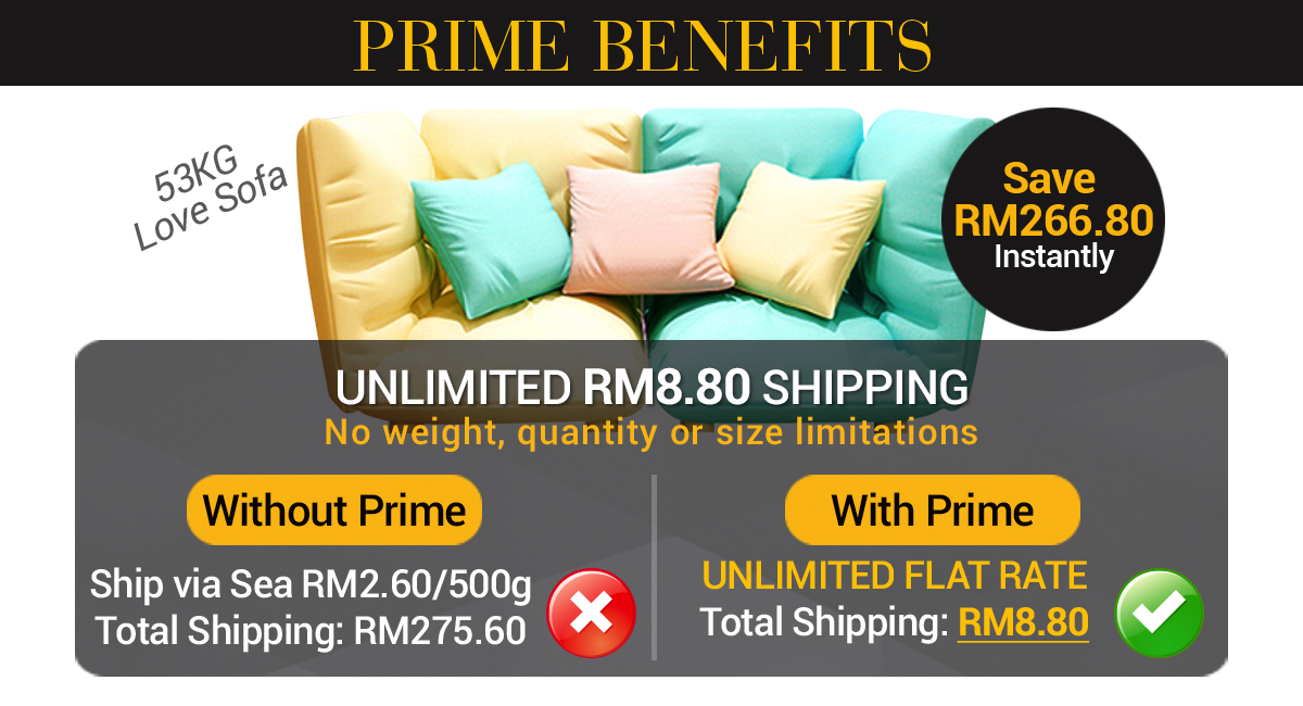 ezbuy Prime 会员享受RM8.80 无限量国际运费。